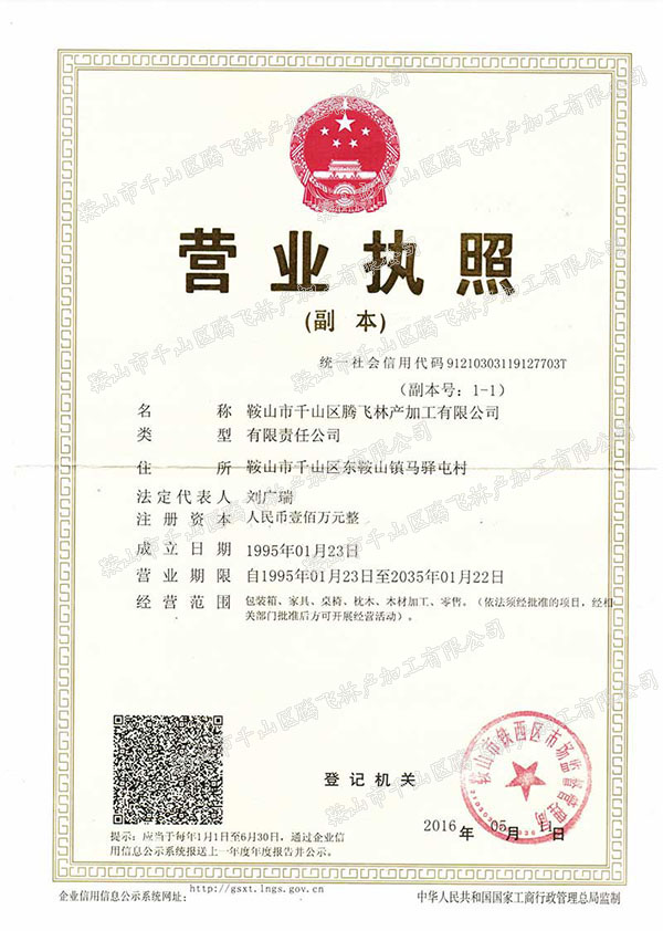 鞍山市千山區(qū)騰飛林產(chǎn)加工有限公司介紹:鞍山市千山區(qū)騰飛林產(chǎn)加工有限公司始建于1995年,是一家專業(yè)生產(chǎn)、加工原木材料,出口包裝容器及免熏蒸包裝箱木托盤等產(chǎn)品的實業(yè)型企業(yè)。位于遼寧渤海經(jīng)濟(jì)帶,鞍山市千山區(qū)。距沈大高速公路四公里左右,交通便捷。多年來為鞍鋼提供大量木制加工產(chǎn)品,為鞍山外資企業(yè)提供大批出口包裝箱、托盤產(chǎn)品。鞍山市千山區(qū)騰飛林產(chǎn)加工有限公司是遼寧省包裝行業(yè)會員單位,1996年至今獲得國家檢驗檢疫局頒發(fā)的出口商品普包、危包、包裝容器許可證。產(chǎn)品運(yùn)輸世界各地。由于產(chǎn)品質(zhì)量優(yōu)良,價格合理,企業(yè)信譽(yù)度好,受到用戶好評。鞍山市千山區(qū)騰飛林產(chǎn)加工有限公司始終堅持“以質(zhì)量求生存,以信義求發(fā)展”的經(jīng)營理念,不斷采用新技術(shù),開發(fā)新產(chǎn)品,堅持“客戶第一”的原則為廣大客戶提供優(yōu)質(zhì)的服務(wù)。歡迎惠顧!